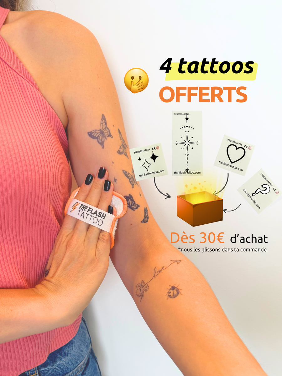Button label🧡 Notre marque The Flash Tattoo est la référence du tatouage éphémère ultra réaliste ! Nos créations sont pensées pour celles et ceux qui veulent changer de style sans contrainte : tatouage femme délicat, tatouage homme affirmé, ou encore tattoo minimaliste pour un look discret. Chaque design se pose facilement, tient jusqu’à 10 jours et résiste à l’eau.